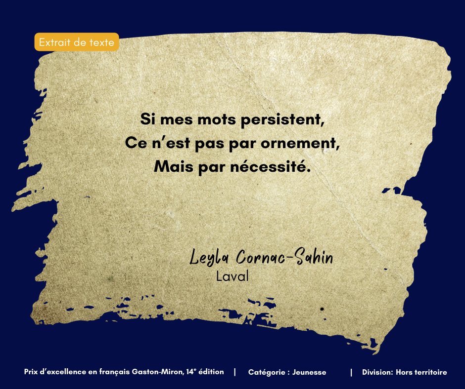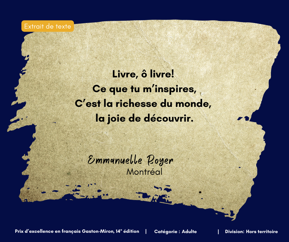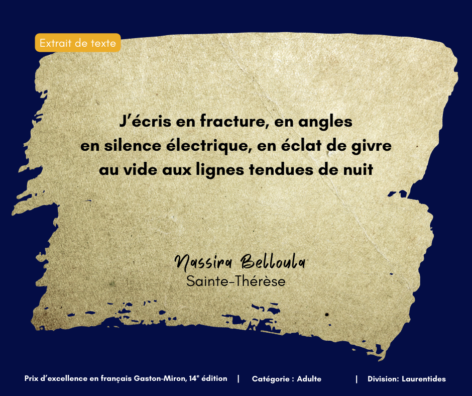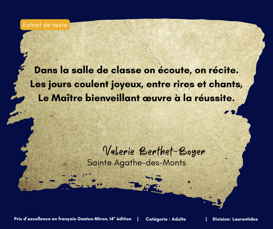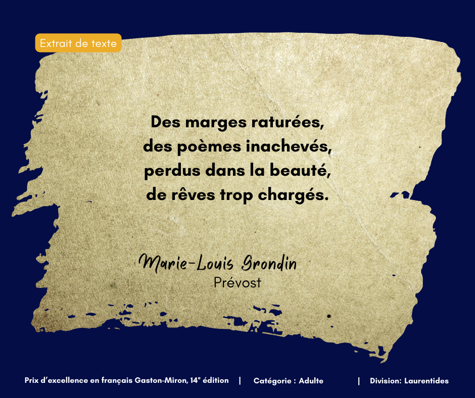 Cette année, alors que pour la première fois de son histoire le concours a lancé son invitation au-delà des frontières des Laurentides, ce sont les plumes talentueuses du Québec entier que nous célébrerons, puisque c’est grâce à leur amour des mots et à ce qu’ils leur inspirent de belles tournures de phrases, que notre langue est belle et vivante.