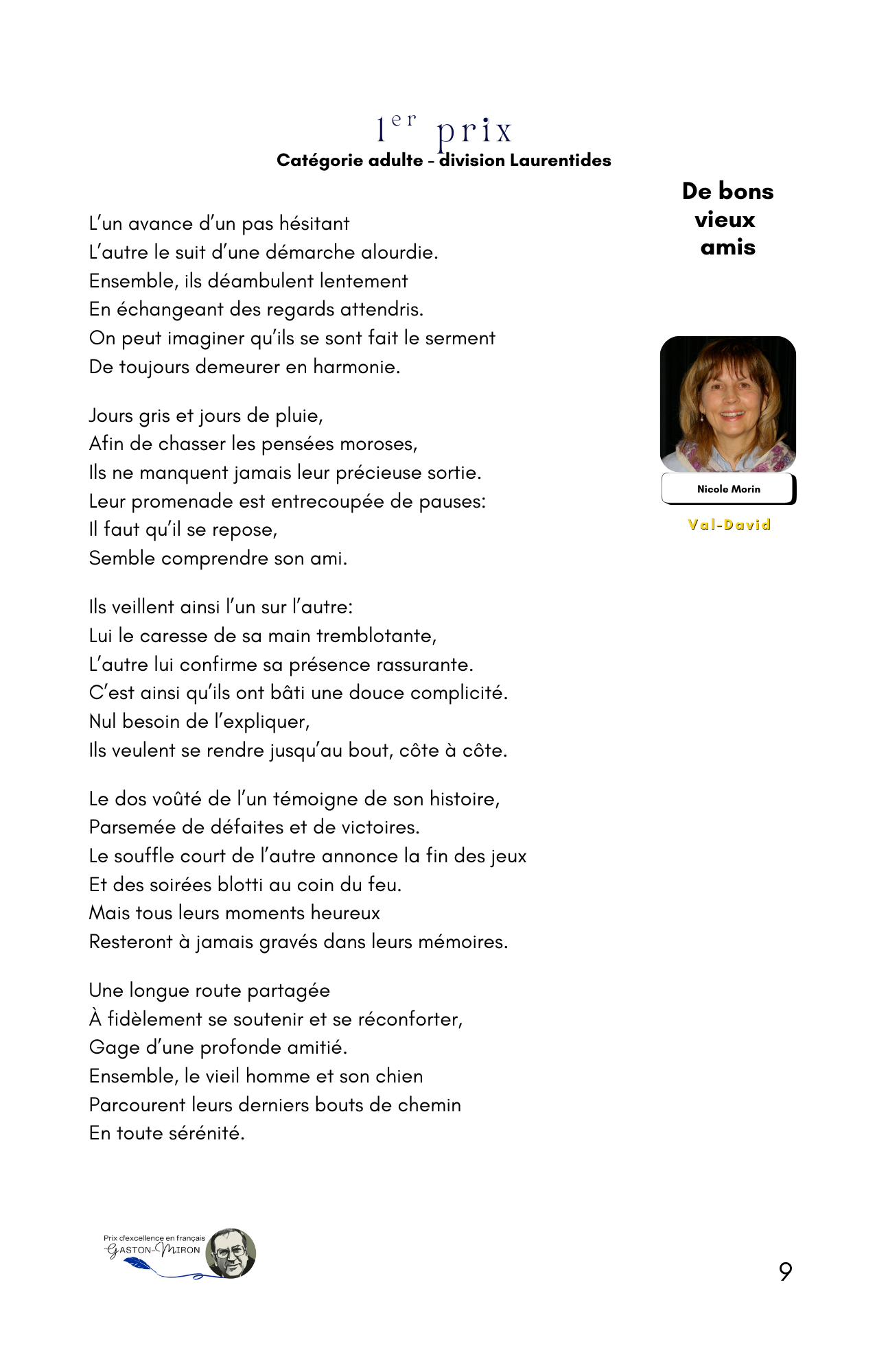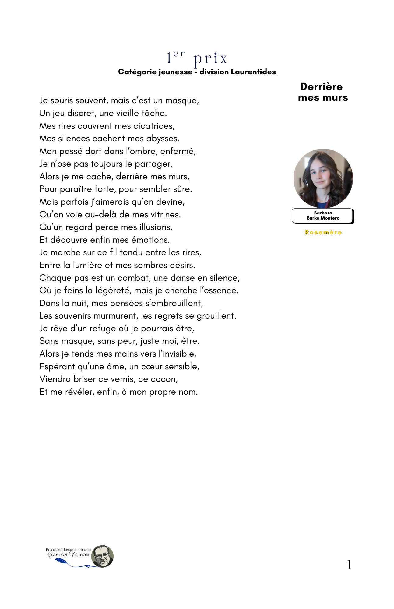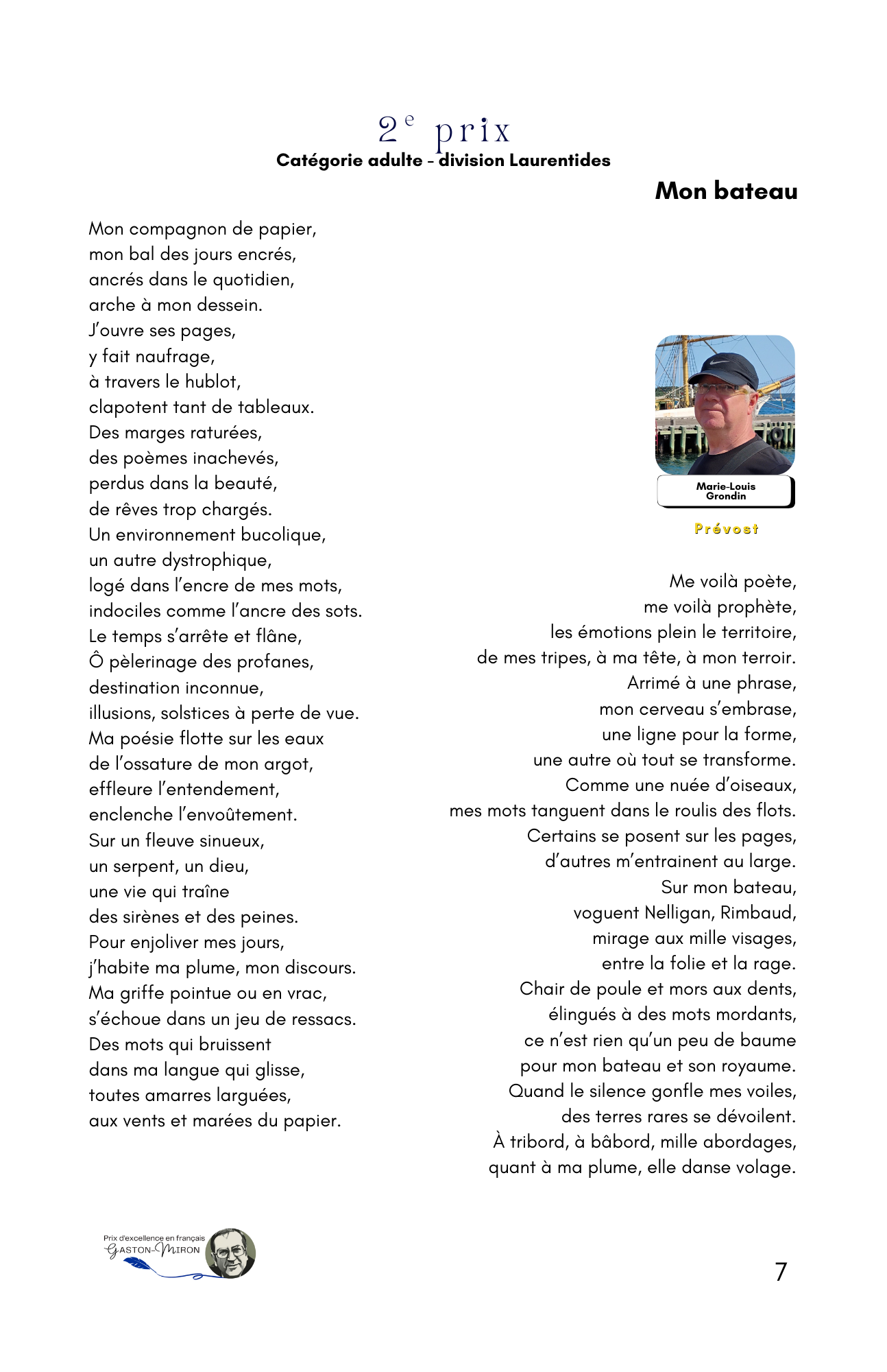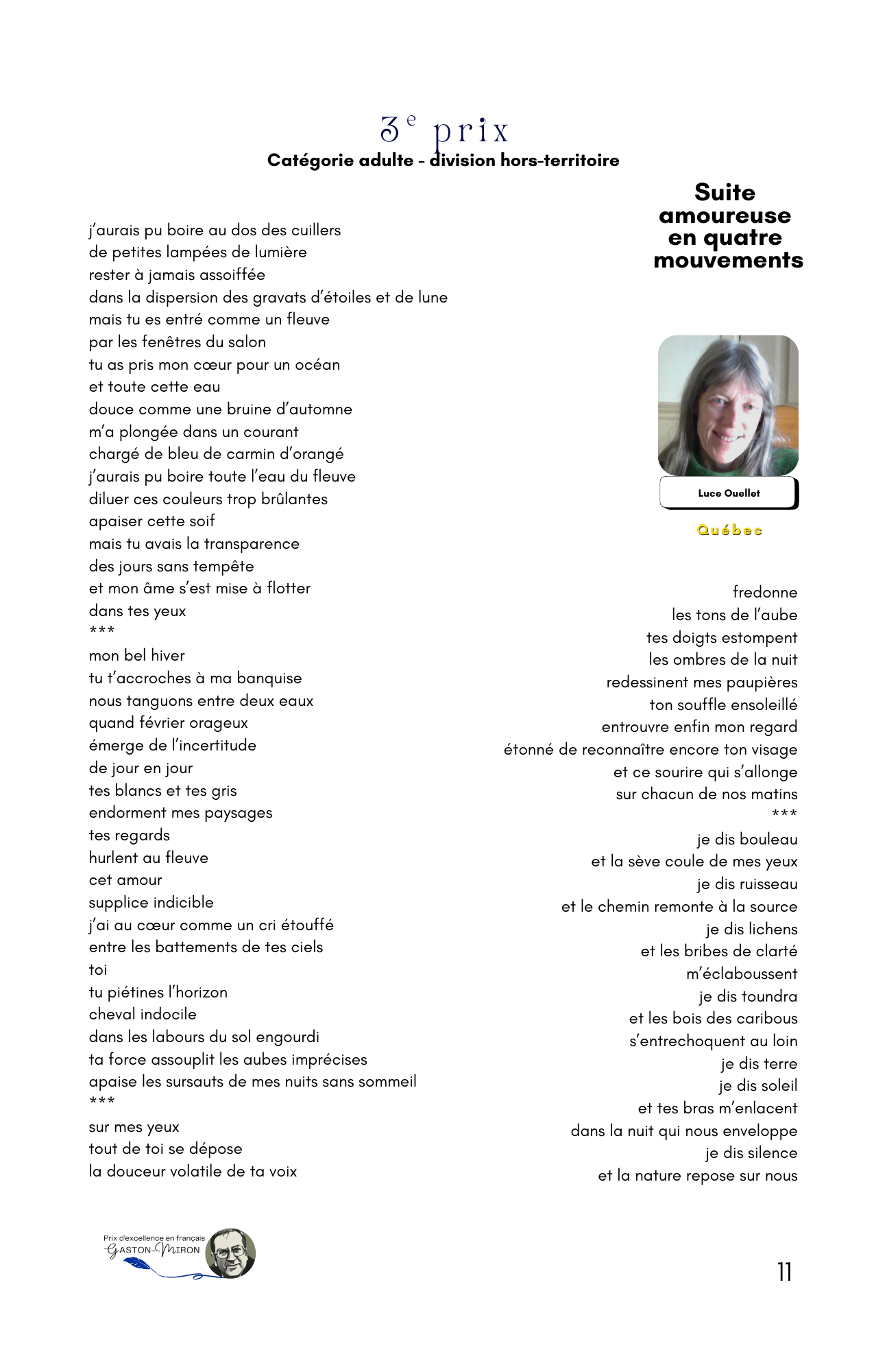 ont été dévoilés(es) et récompensés(es). Le Mouvement Québec français des Laurentides (MQFL) et la Société nationale des Québécoises et Québécois, région des Laurentides (SNQL), initiateurs et organisateurs de ce concours annuel, sont enchantés de l’indéniable succès de cet après-midi poétique, alors que pour la première fois de son histoire le comité organisateur osait lancer son concours annuel au-delà des frontières des Laurentides, soit à travers tout le Québec.