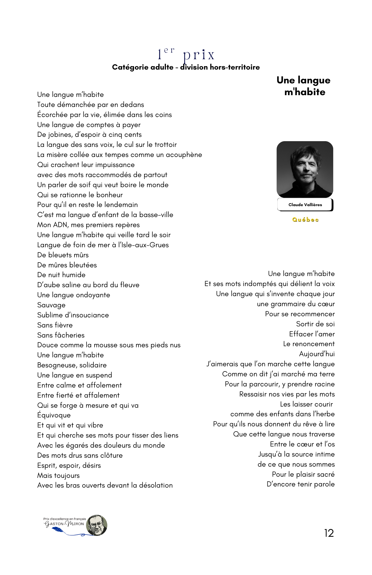 Prix d’excellence en français Gaston-Miron